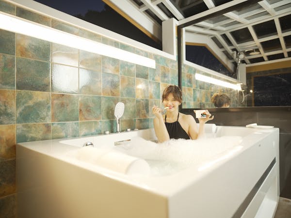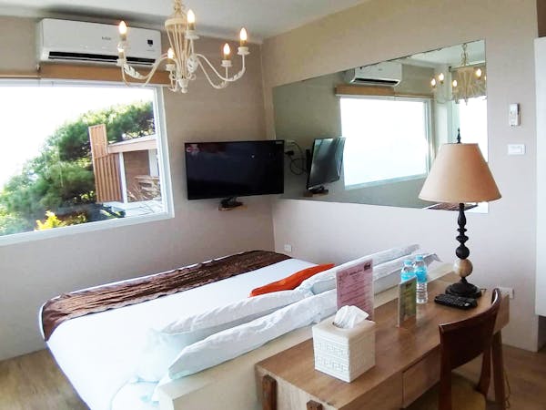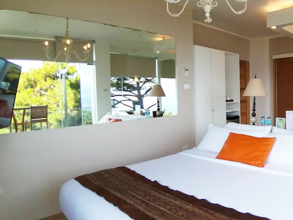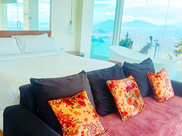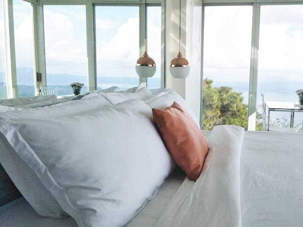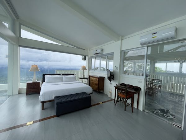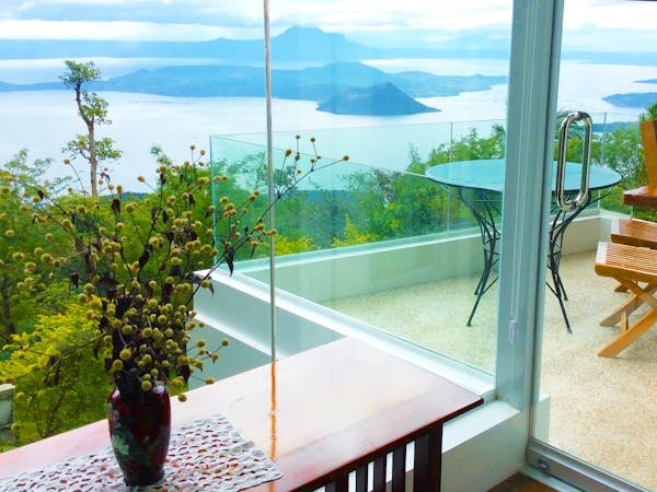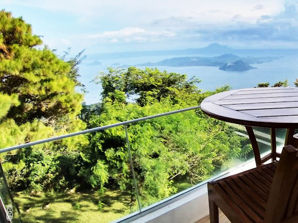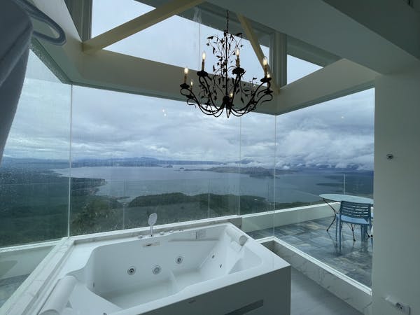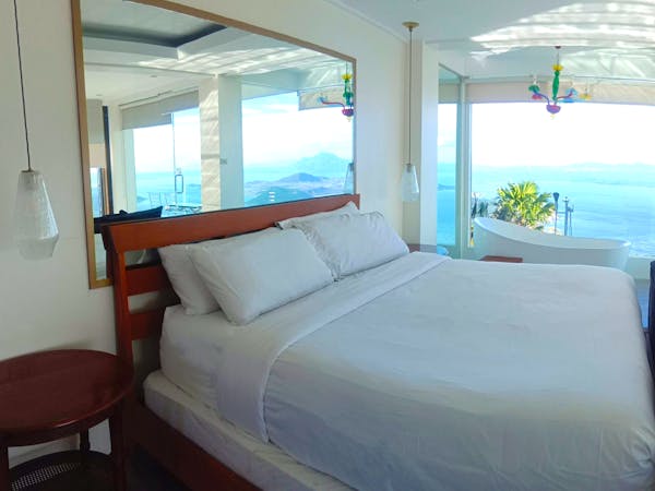 The Sky Cottage, a generous size of approximately 80sqm, is our latest addition to our portfolio of unique and oversized rooms. Situated in the highest point of our property, this showcases 360 degrees unobstructed views of the surroundings mountains, lake and city. It features a wrap around balcony that lends the feel of a cottage floating in the sky. The room's interior design fosters a feeling of being in the middle of the clouds and one with the sky. The furniture and fixtures are of the best quality with all Grohe fixtures and mostly Ethan Allen furniture. The focal point of the room is a large whirlpool tub that can accommodate two and offers the same breathtaking, unobstructed view of Taal Lake. The black out blinds are motorized and are opened and closed with the touch of a button. A stay at The Sky Cottage is truly an experience in itself.