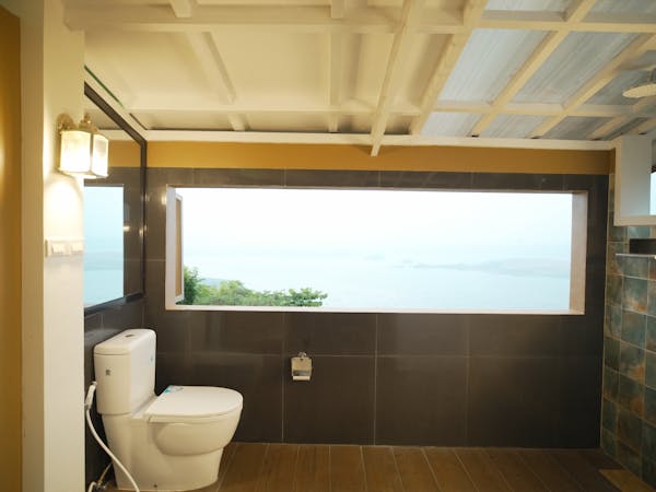 The Cabana is a full bathroom all to itself that is equipped with Grohe fittings, Baldwin Brass lighting and a bathtub. Its roof is designed to cover only half of the Cabana so that the lavatory and the toilet are indoors and the bathtub and rain shower are semi-outdoors whose only roofing are the branches and needles of a big pine tree. On a clear day, the Cabana offers breathtaking views of Taal Lake and the majestic mountains of Makiling, Maculod and Banahaw. On a clear night, while immersed in the relaxing bathtub, the occupants will be able to see the stars and the rest of the night sky through the delicate branches and needles of the pine tree. The entire structure is cleverly designed such that it can give the feel of being outdoors amid trees while assuring the privacy of its occupants.