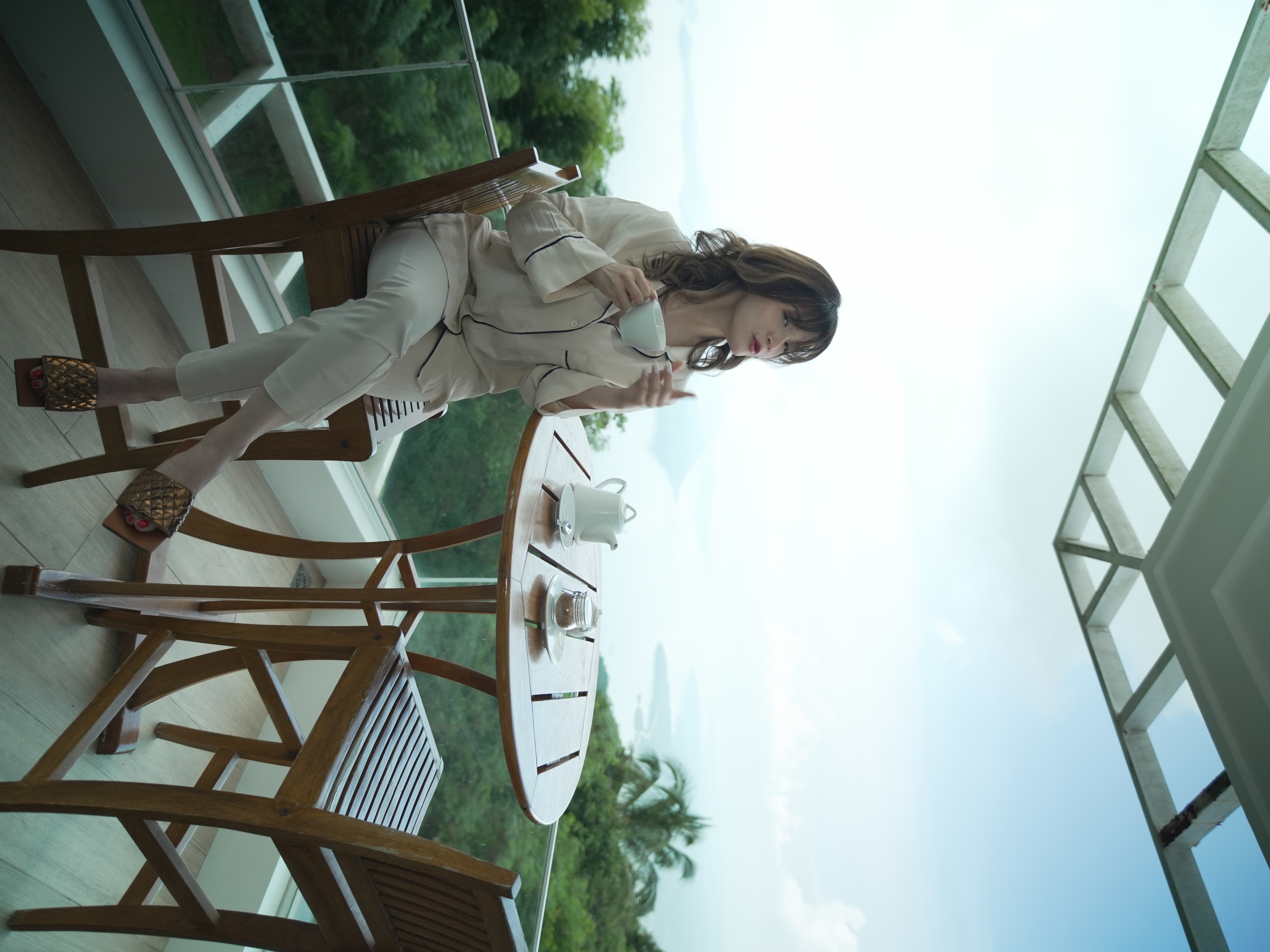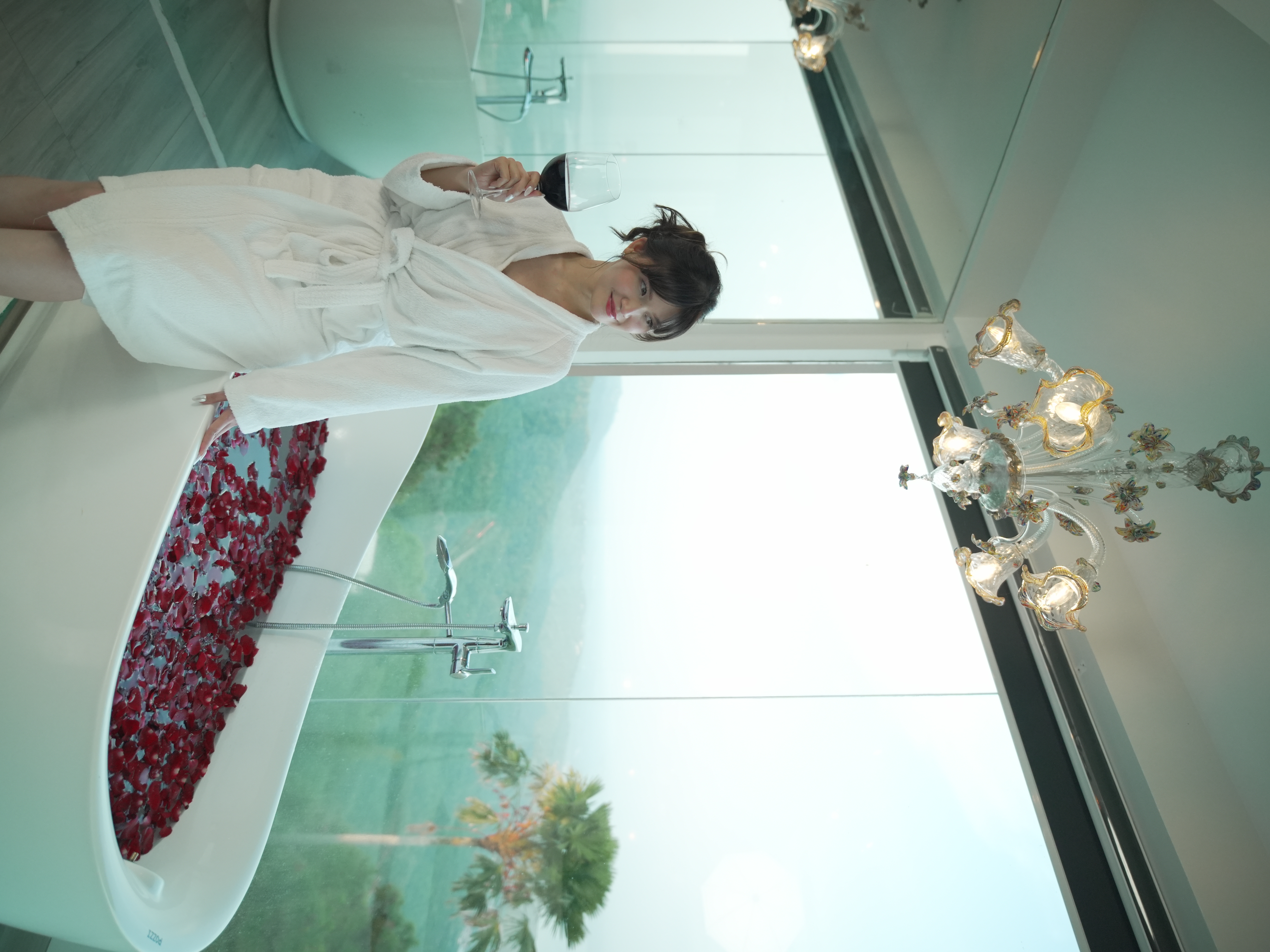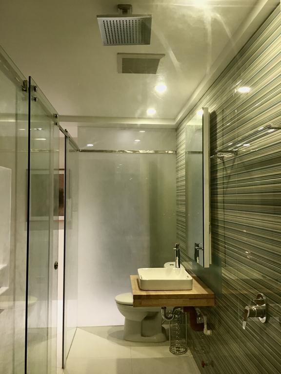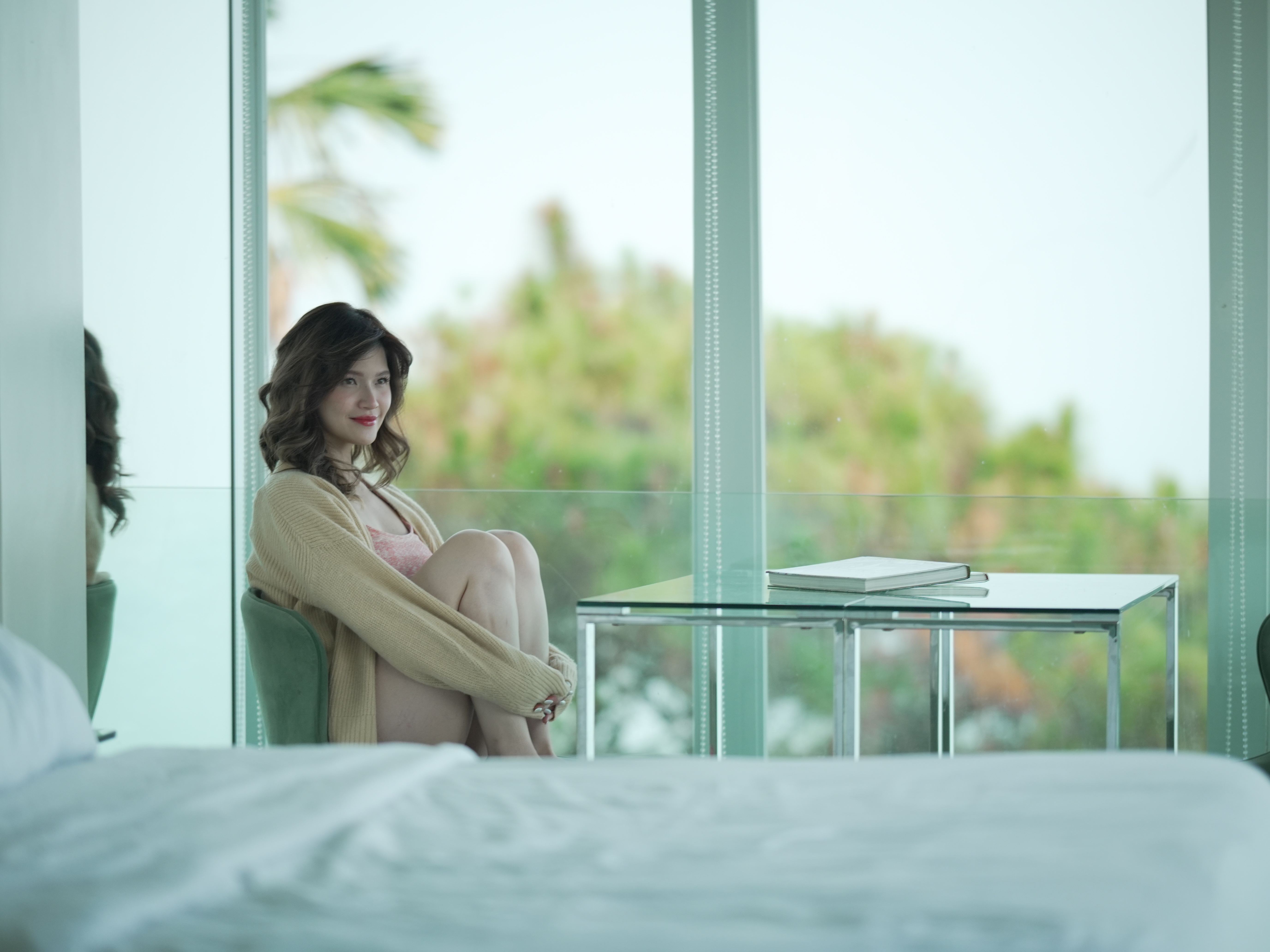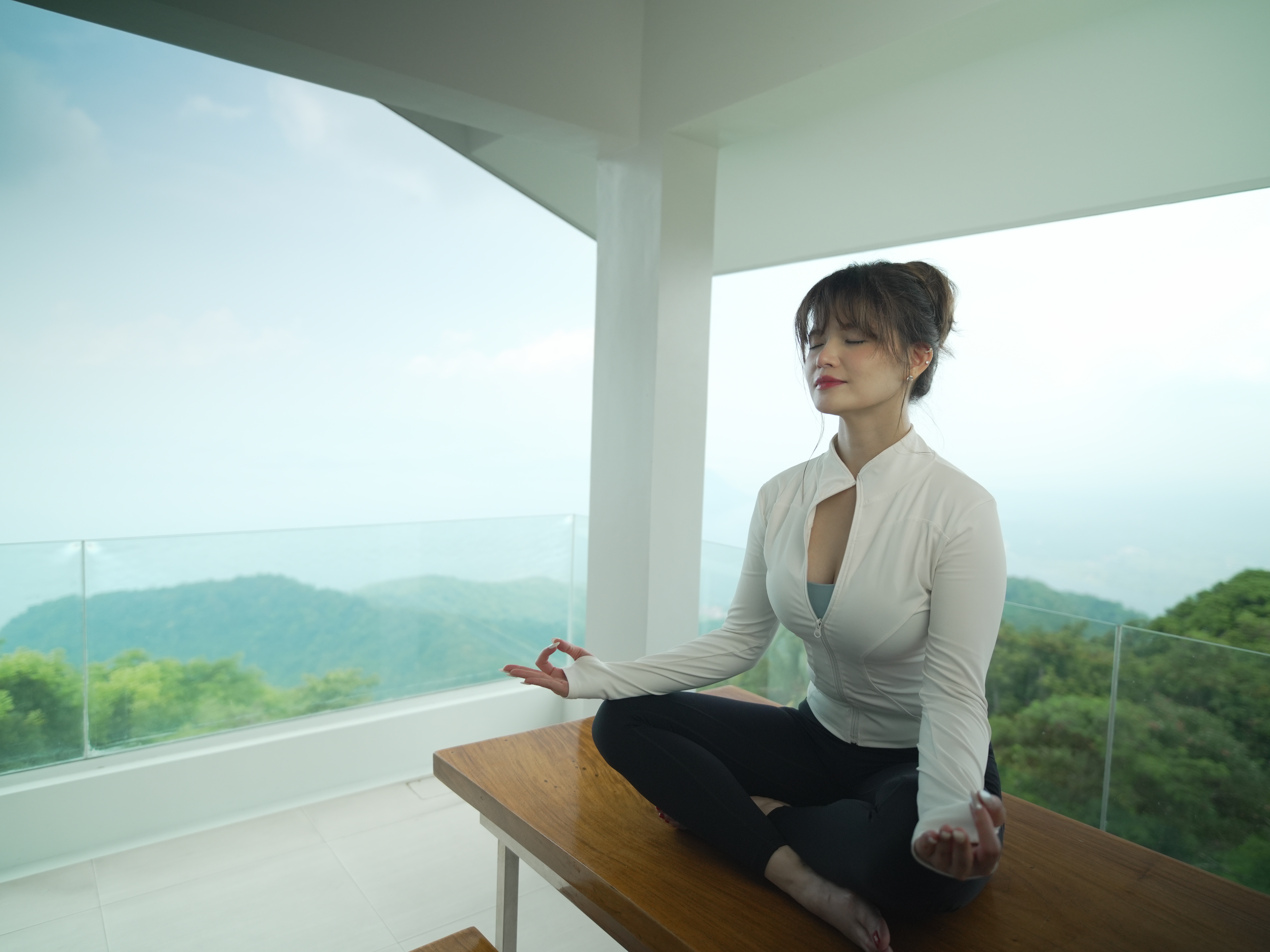 The Mid Pines Suite 2 (30 sqm) is a corner room that features an all glass concept with breathtaking views of the lake. The entry immediately reveals a picture window that frames the volcano island in the middle of Taal Lake. The suite boasts of floor-to-ceiling windows that are cleverly designed to open to the fullest thus converting the air conditioned sealed room to an open air balcony. It has an all glass bathroom wall with rain shower and an all glass dining table. Its king size bed faces the lake and has legs made of glass giving the impression that the bed is floating.