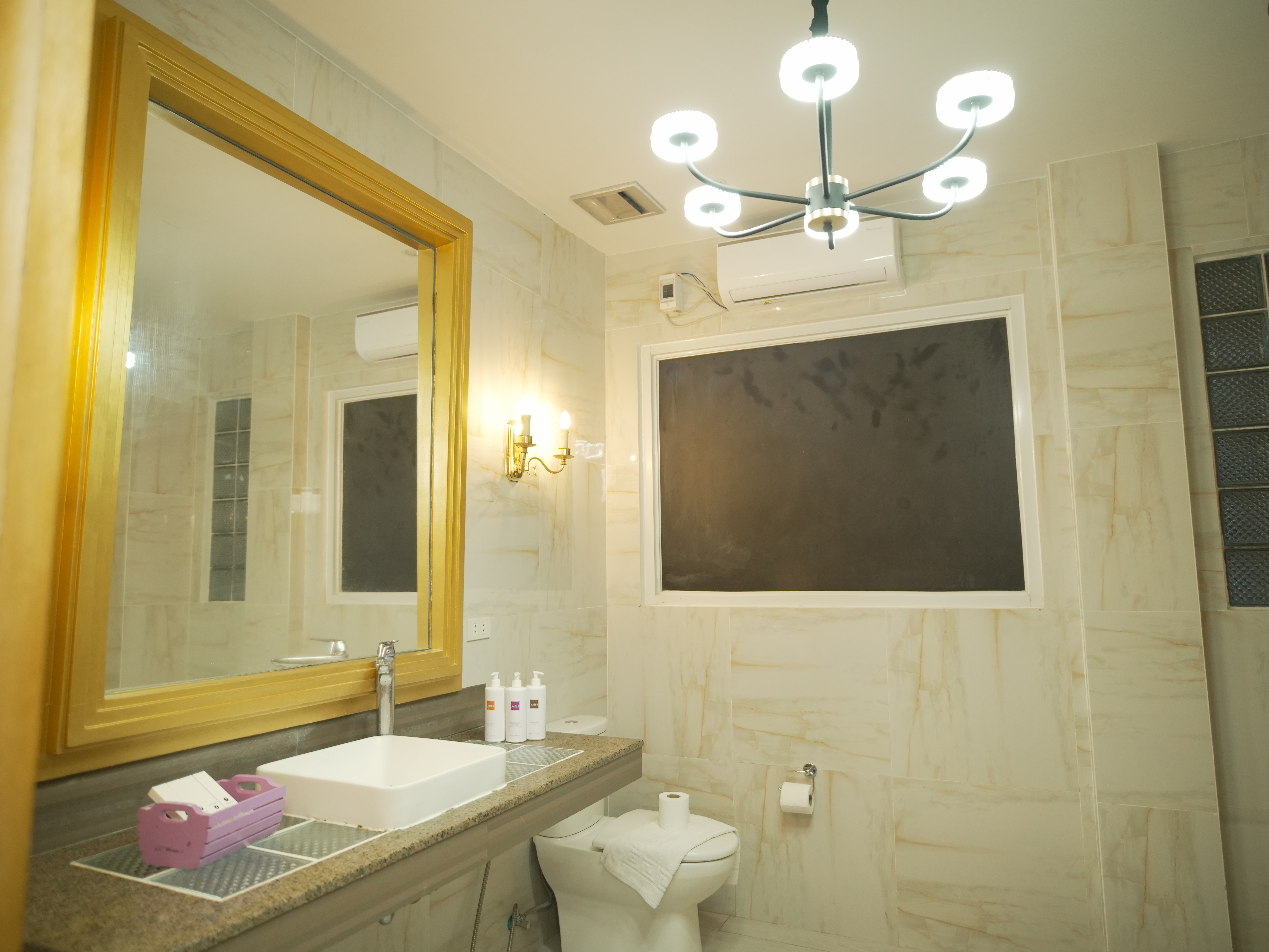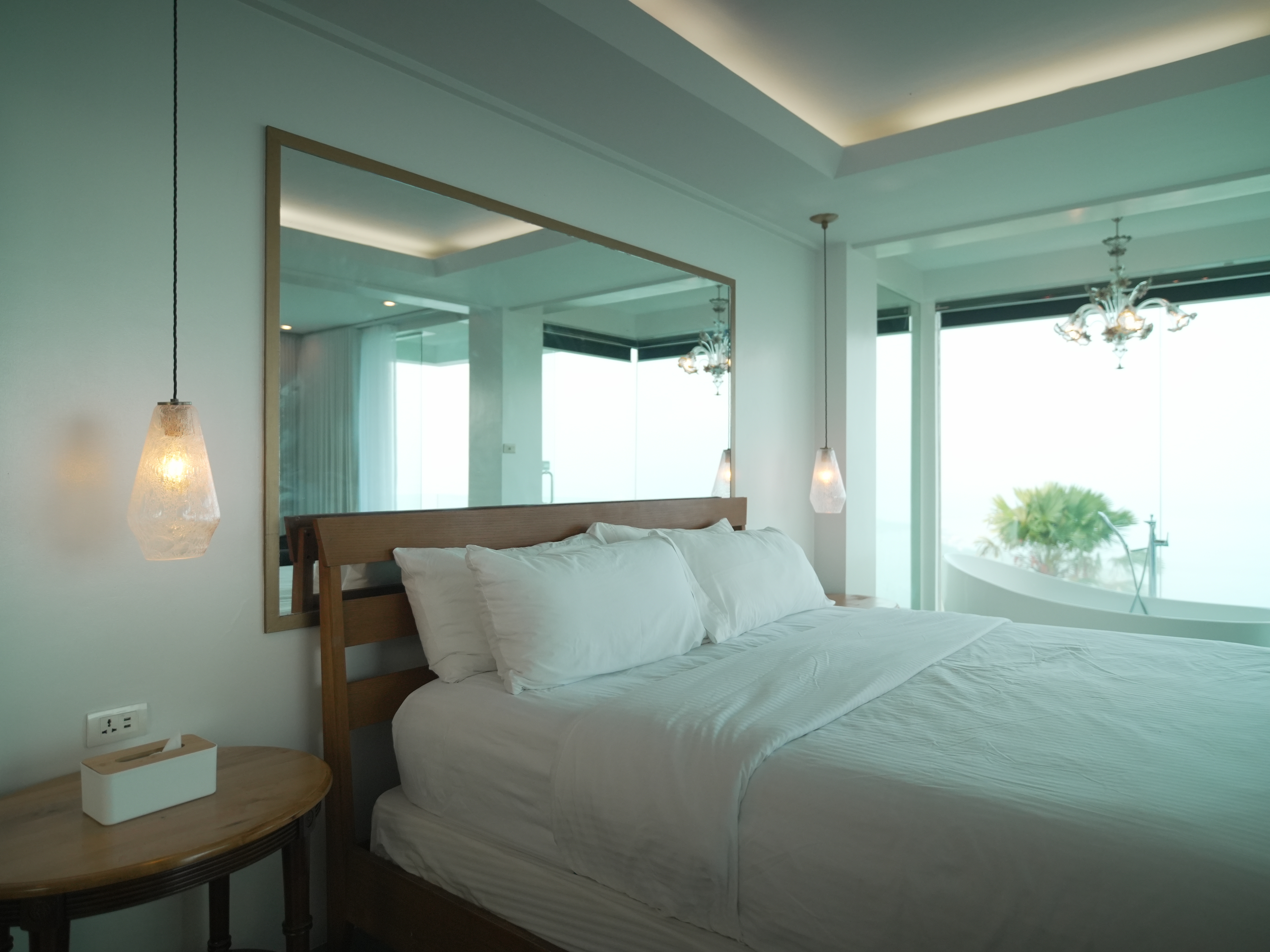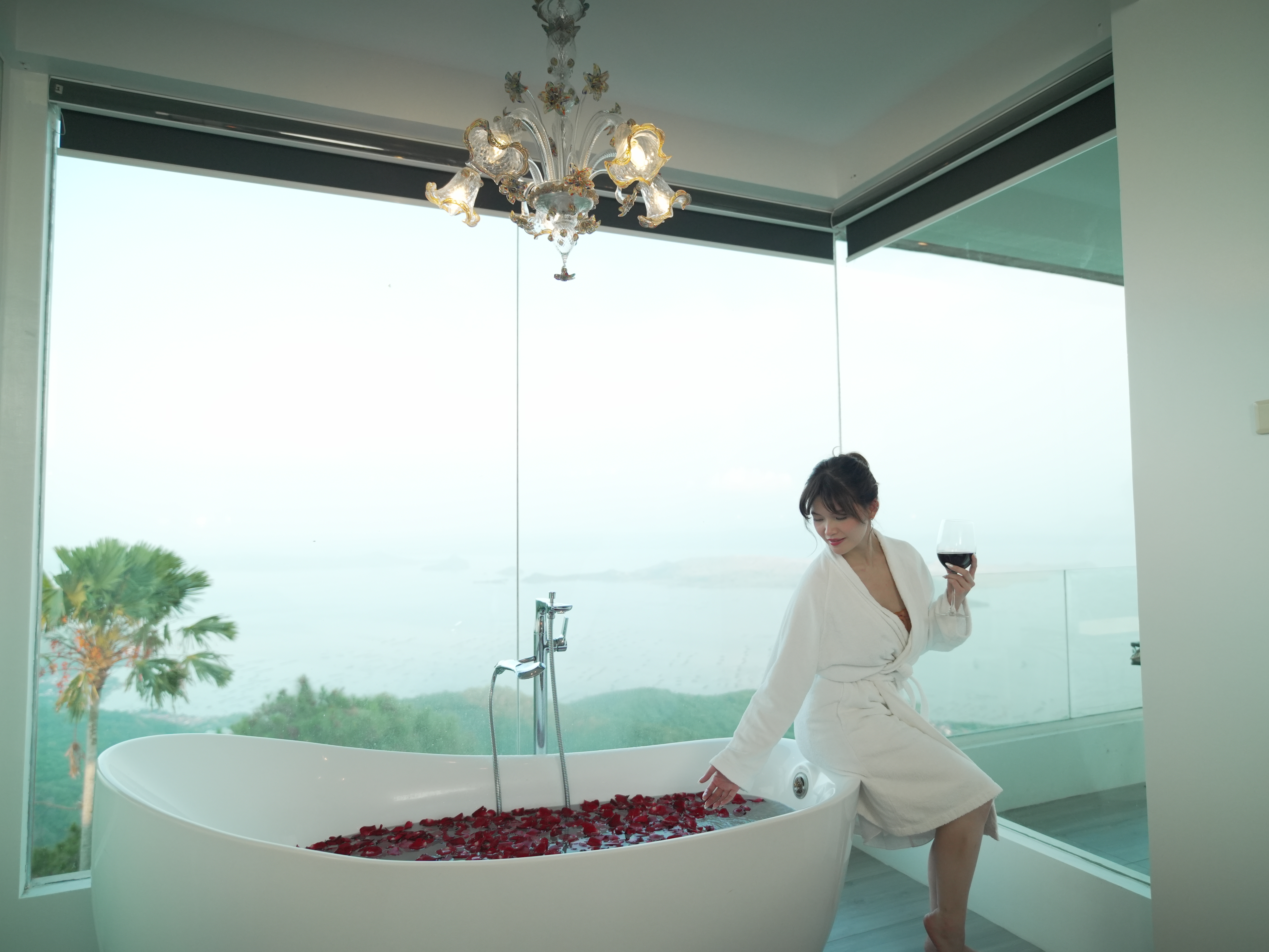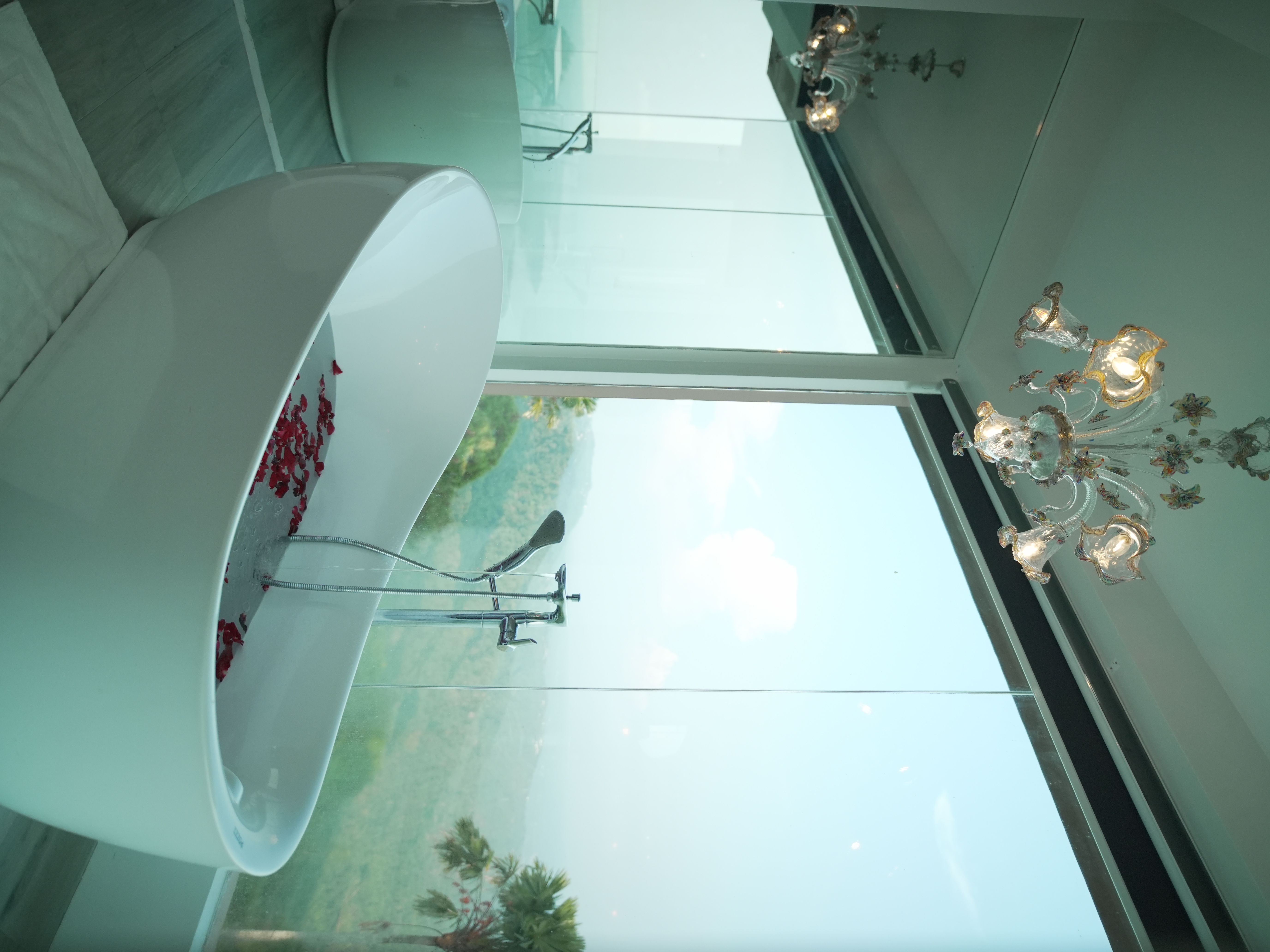 The Murano Suite is home to an assortment of fine Venetian glass lighting fixtures from chandeliers to scones to drop lights, all shipped by air from Murano. Like all our other rooms, The Murano Suite is a corner unit. It was designed to showcase the breathtaking lake view to the east (Lake Taal) and ocean views to the south (Balayan Bay and Batangas Bay).