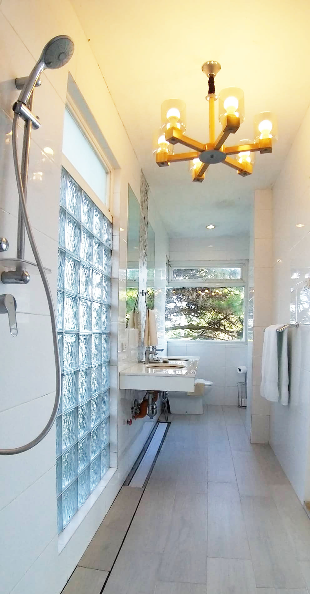- a bathroom with two Grohe rain showers;