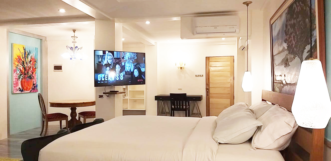 The Family Cabana is an addition to our fleet of handcrafted, individually themed rooms of luxurious living. Consistent with our design philosophy that no two rooms in The Carmelence View are alike, the Family Cabana has its own unique feel and brand of luxury as it features Ethan Allen furniture and Baldwin Brass lighting fixtures. Yielding the same central view of Taal Lake as with all of our rooms, the Suite comes with: