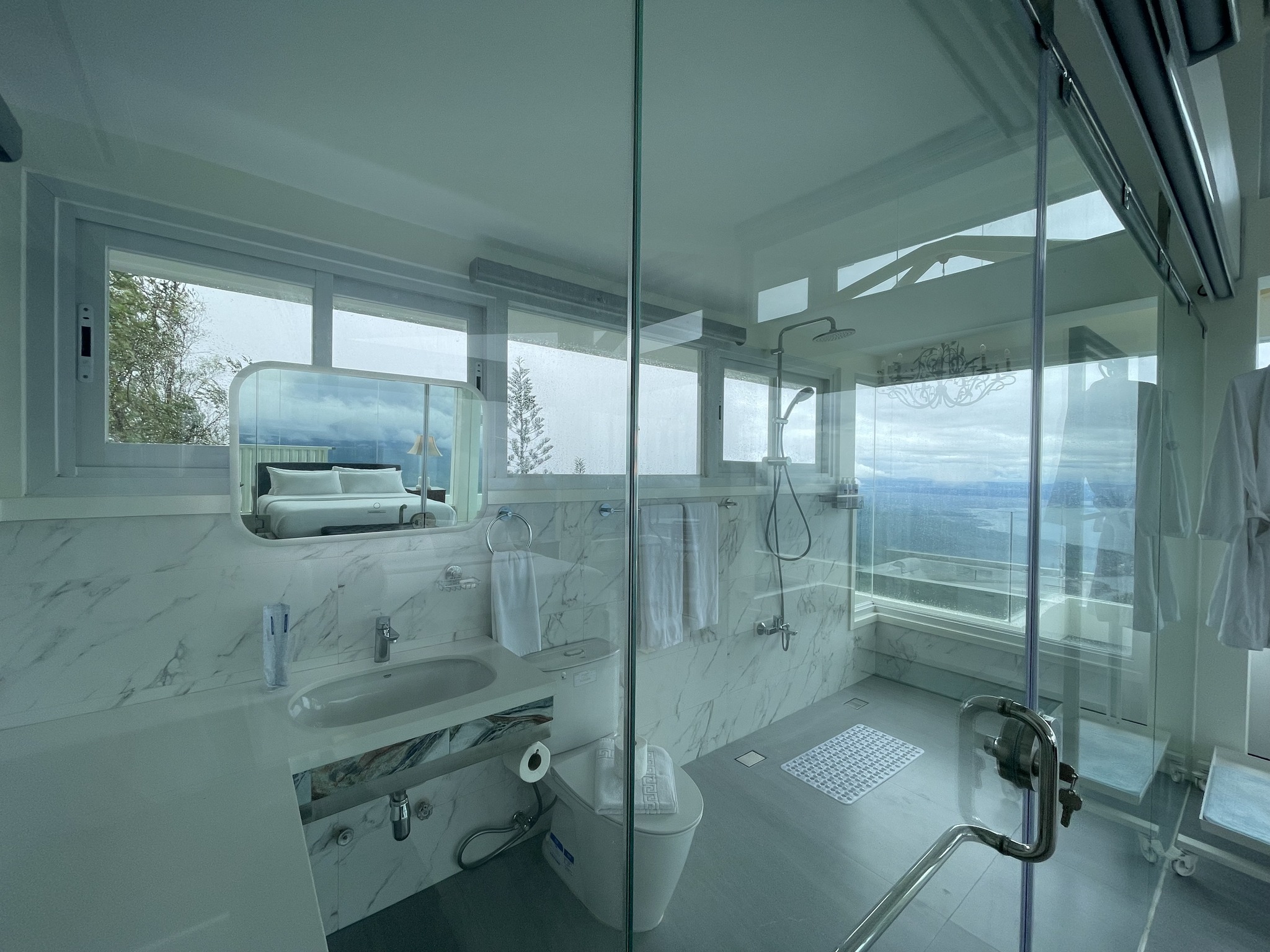 The Sky King Suite (60 sqm) is pure luxury and resplendence in its design, fixtures, furniture, amenities, and views. (Even the toilet has a view of the lake.) It is fitted with a memory foam king bed, its tables and countertops are made from solid hardwood and stainless steel while the floors are delicately cladded with some of the finest Italian porcelain tiles. Its oversized bathroom is equipped with two rain shower heads and has its own inverter type air-conditioning. Breakfast is served at the generous size balcony with a commanding, unobstructed view of the lake and surrounding mountains.