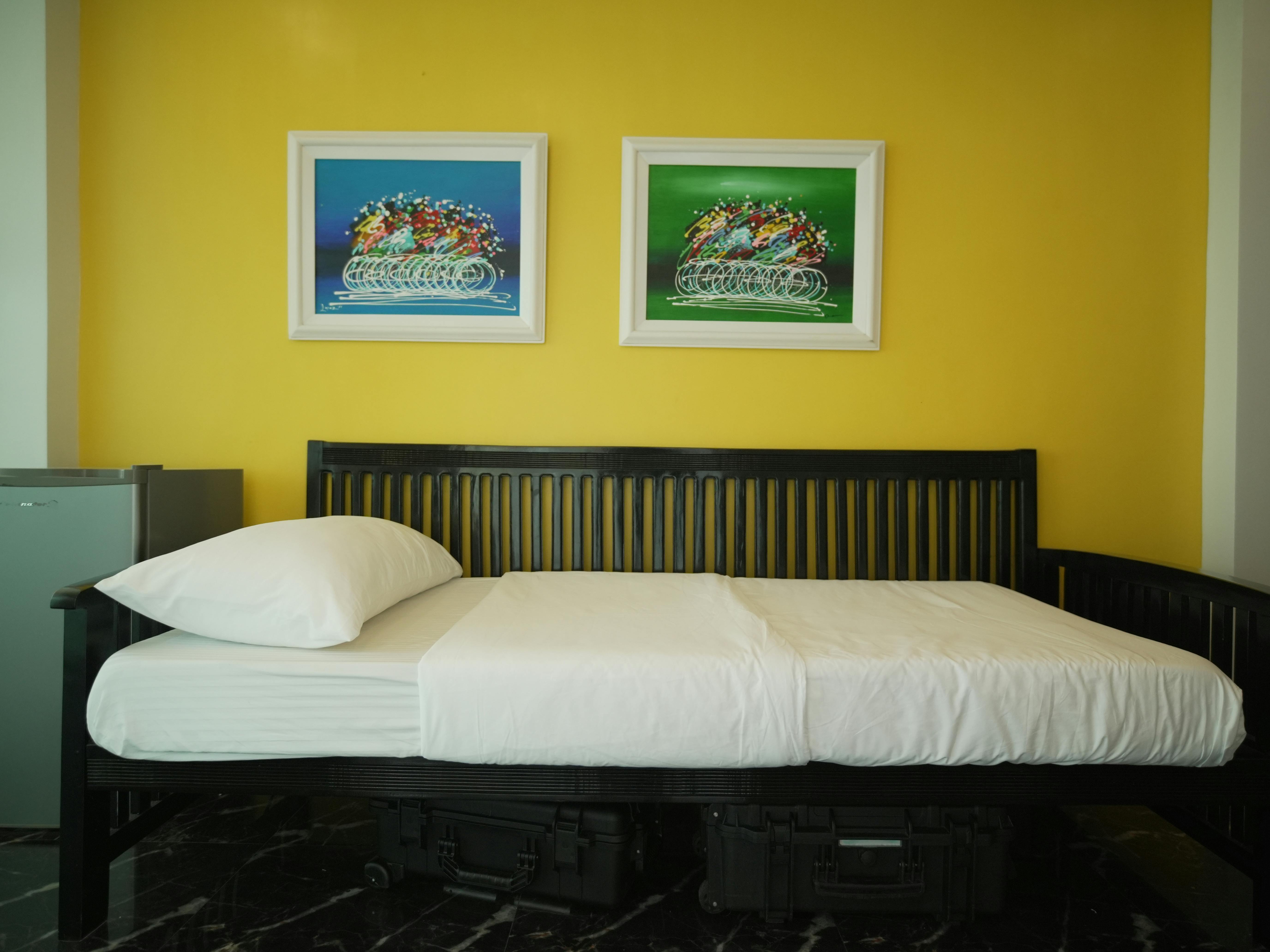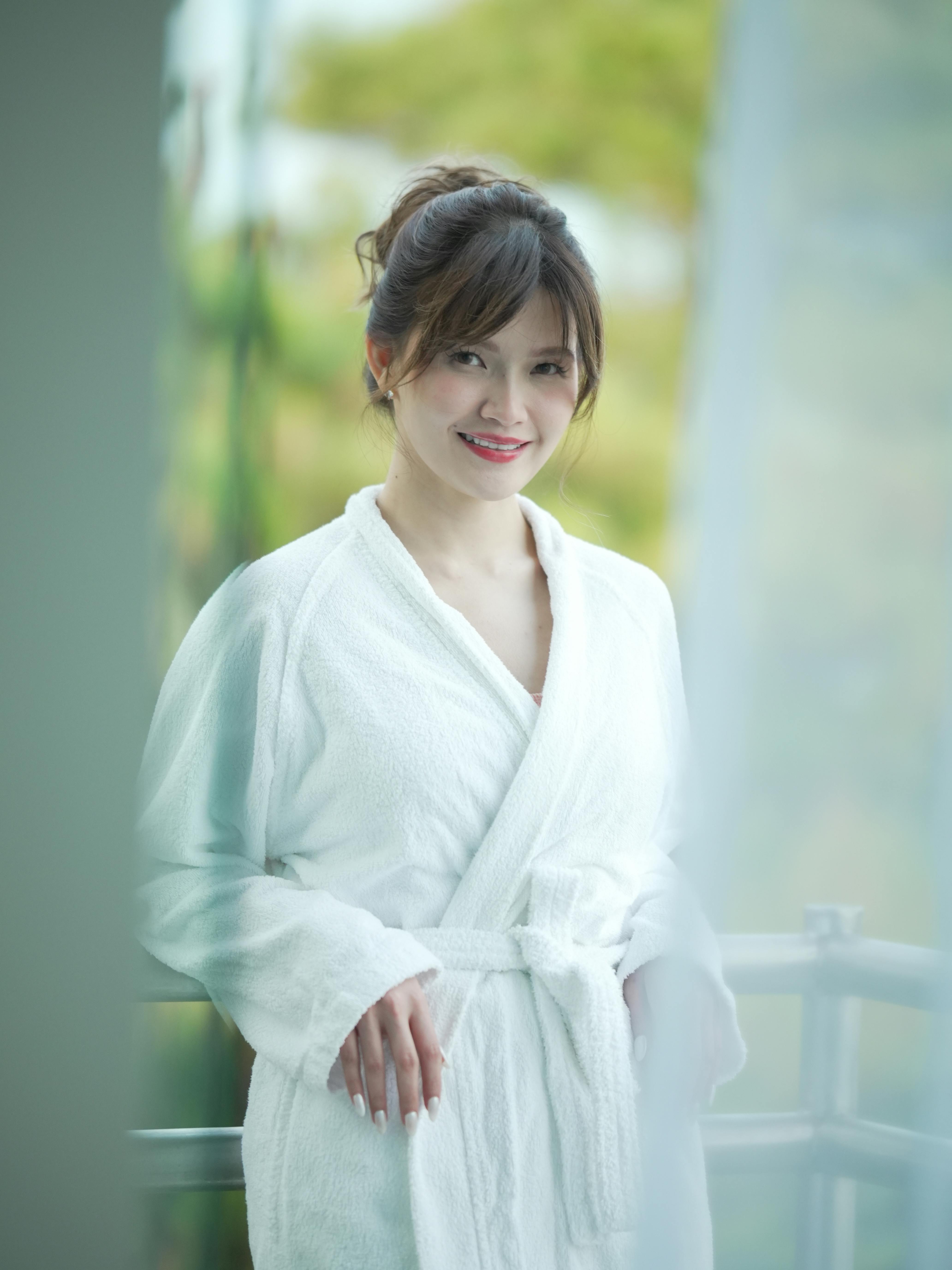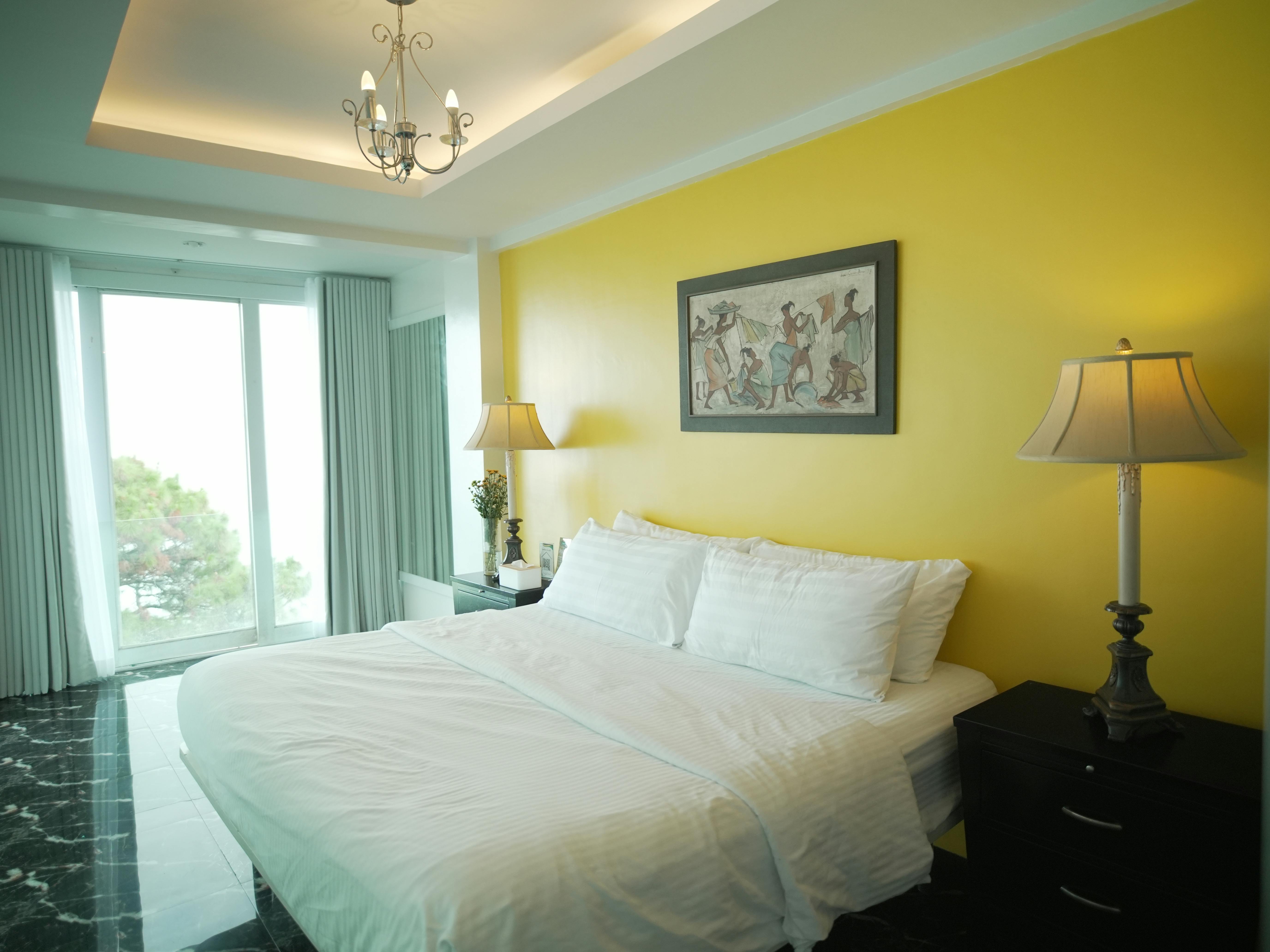The Mid Pines Suite 1 (45 sqm) is a one-bedroom corner suite with a cozy living area and two balconies that rise up to middle portion of the pine trees in the surroundings giving the semblance of being in a tree house. The suite features floor-to-ceiling pictures windows that reveal unobstructed view of Taal Lake and, on a clear day, the mountains of Laguna and Quezon provinces. The bathroom is also designed to provide unobstructed view of the lake while occupants can enjoy the twin rain shower heads.