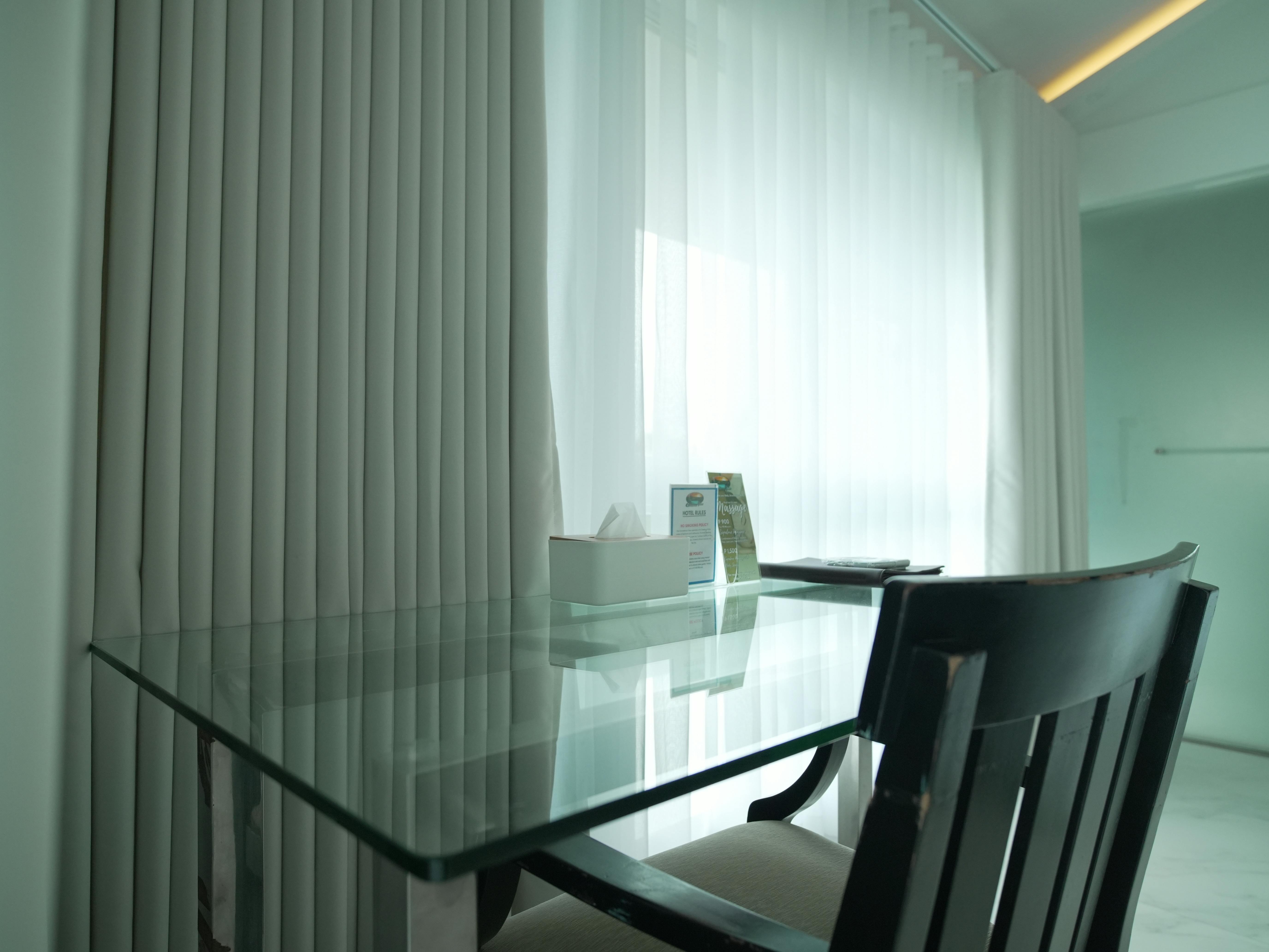 The Sky King Suite (60 sqm) is pure luxury and resplendence in its design, fixtures, furniture, amenities, and views. (Even the toilet has a view of the lake.) It is fitted with a memory foam king bed, its tables and countertops are made from solid hardwood and stainless steel while the floors are delicately cladded with some of the finest Italian porcelain tiles. Its oversized bathroom is equipped with two rain shower heads and has its own inverter type air-conditioning. Breakfast is served at the generous size balcony with a commanding, unobstructed view of the lake and surrounding mountains.